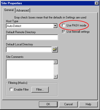 Transfer type Bij sommige versie's kan u een keuze maken tussen ASCII - Image of Auto-detect.
