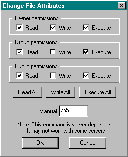 CHMOD 777 = Alles aangevinkt